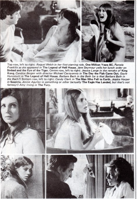 He points to one flaw in the film. He doesn’t like the sentimental ending that I’ve always found very touching. Maybe you have to have a natural affinity to Jenny Agutter. In the same issue she features in the FANTASY FEMALES IN JEOPARDY with a caption saying “Jennie Agutter in something or another.” John Landis apparently had a retort, saying, “Only people over 40 who don’t like the ending.”