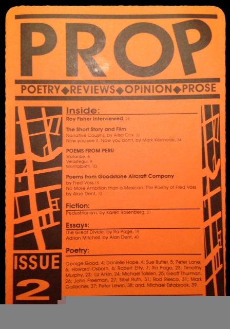 I edited PROP magazine with Steven Blyth for ten issues from 1996 to 2003. It started life as a component of his Poetry MA with Manchester University, but we developed its scope by becoming a more rounded literary magazine, that included prose, reviews and opinions.
