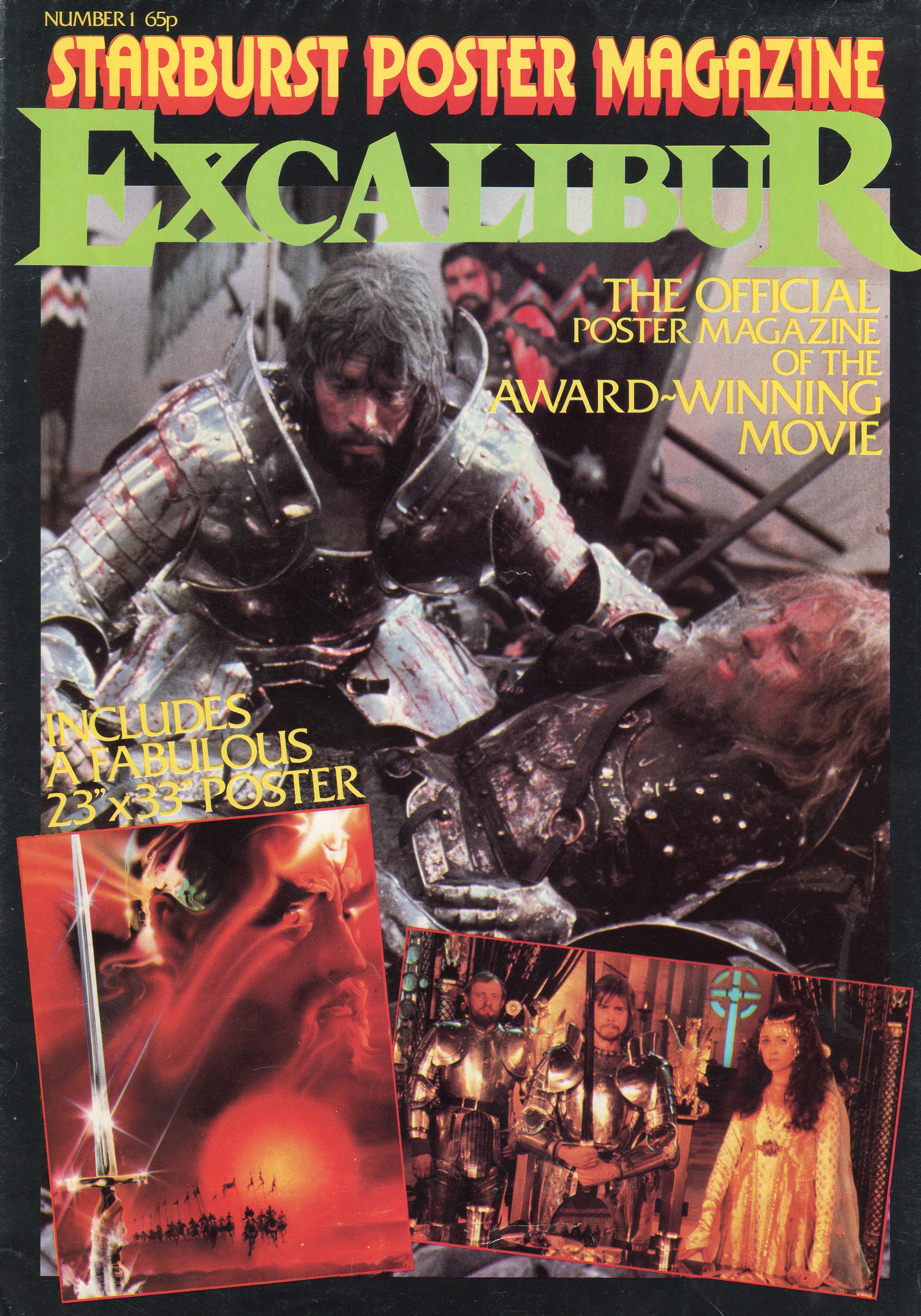 I remembered that on my bedroom wall, among the Madness posters and the cover of Smash Hits featuring Claire Grogan, I had a film poster of EXCALIBUR. It was the first ever Starburst Poster Magazine (I’m not even sure whether there were any more) that was on my wall for a long time, so long that I’d forgotten that there were articles on the other side.